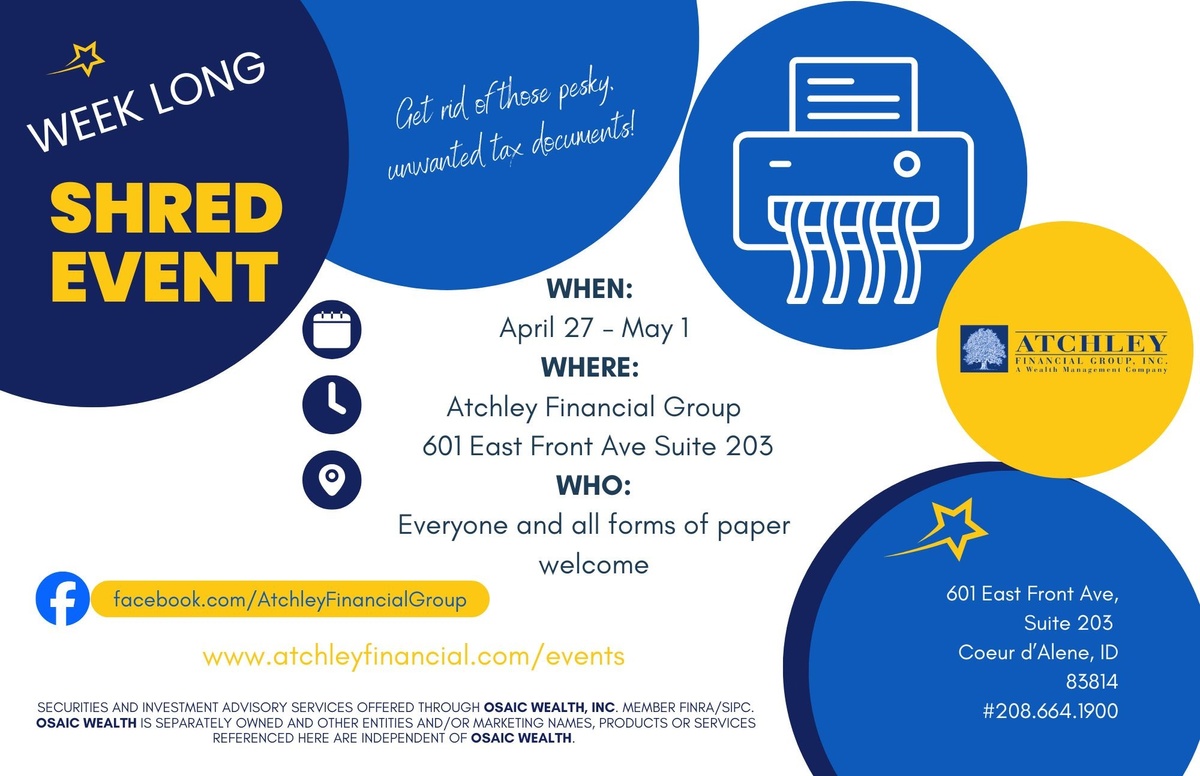 Atchley Financial Group is putting on our fourth annual Shred Event.